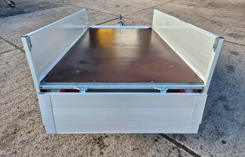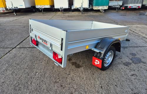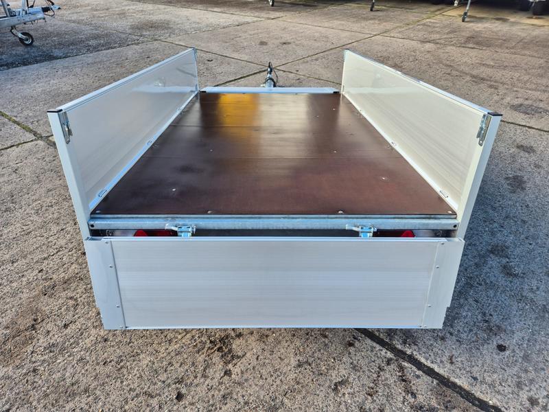 Aluminium-Bordwände, 8x Zurrösen in der Bordwand seitlich versenkt ,Stirnwand klappbar, 1x Stützrad, 13 pol. Stecker ,Abbildung kann Optionales Zubehör enthalten