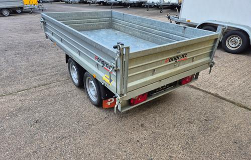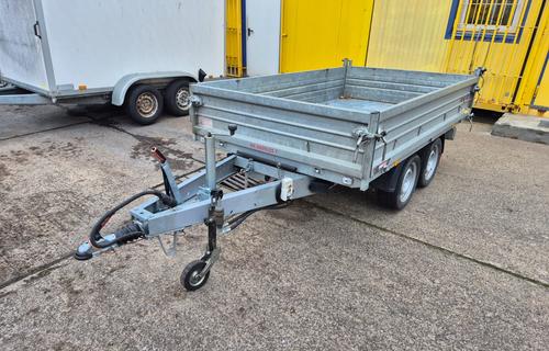 Hochlader mit rückwärts Kippfunktion: Elektro- und Handpumpe, Stahlbordwände mit Hakensatz 4-seitig abklappbar, hintere Bordwand auch auspendelbar,