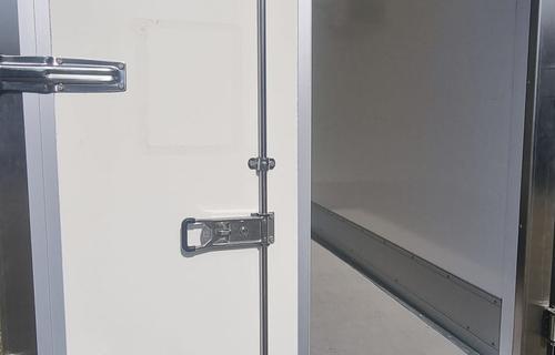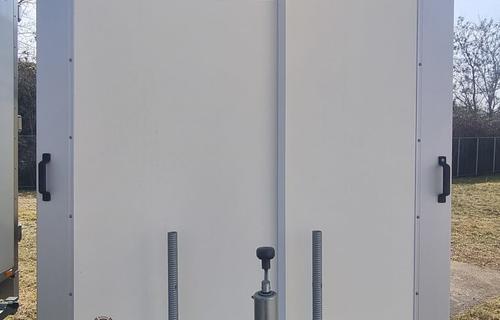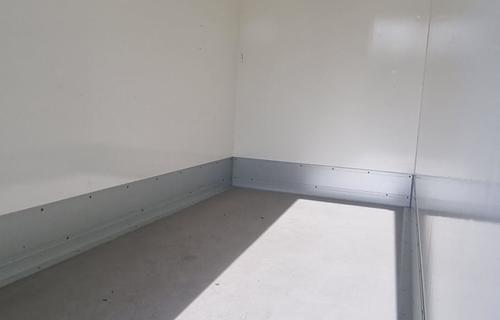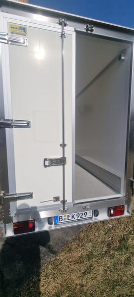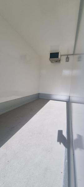 Farbe weiß, Werbung nur foliert, Türen 100mm stark, 2 flügelige Hecktür mit 2x Drehstangenverschluss (Kühlzellenverschluß),2x Türfeststeller, Kühlanlage an Stirnwand montiert incl. Innenbeleuchtung 230V